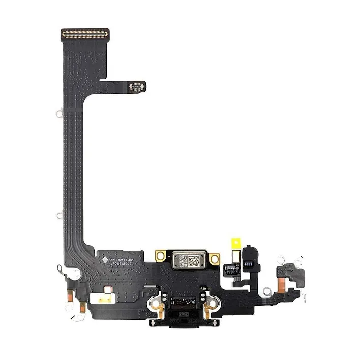 En svart flexkabel för laddningskontakten och mikrofonen för iPhone 11 Pro möjliggör enkel ersättning av en skadad eller defekt flexkabel för att återställa laddnings- och ljudfunktionaliteten på din enhet.