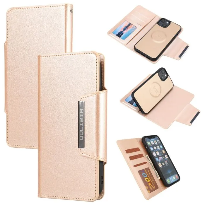 iPhone 13 - Löstagbart PU-läderfodral i sidentextur (rosa)