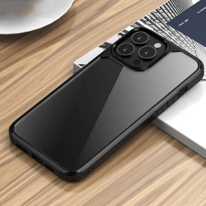 iPhone 13 Pro - Stötsäker TPU + genomskinligt PC-skyddskal (svart)