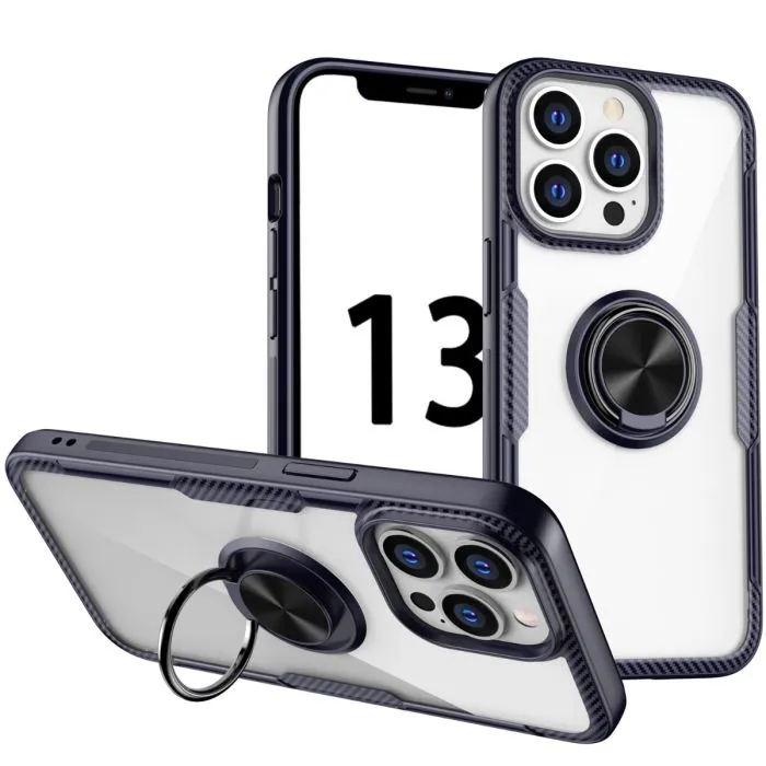 Stötsäker Transparent TPU + Skyddsfodral i akryl med ringhållare för iPhone 13 Pro Max (blå)